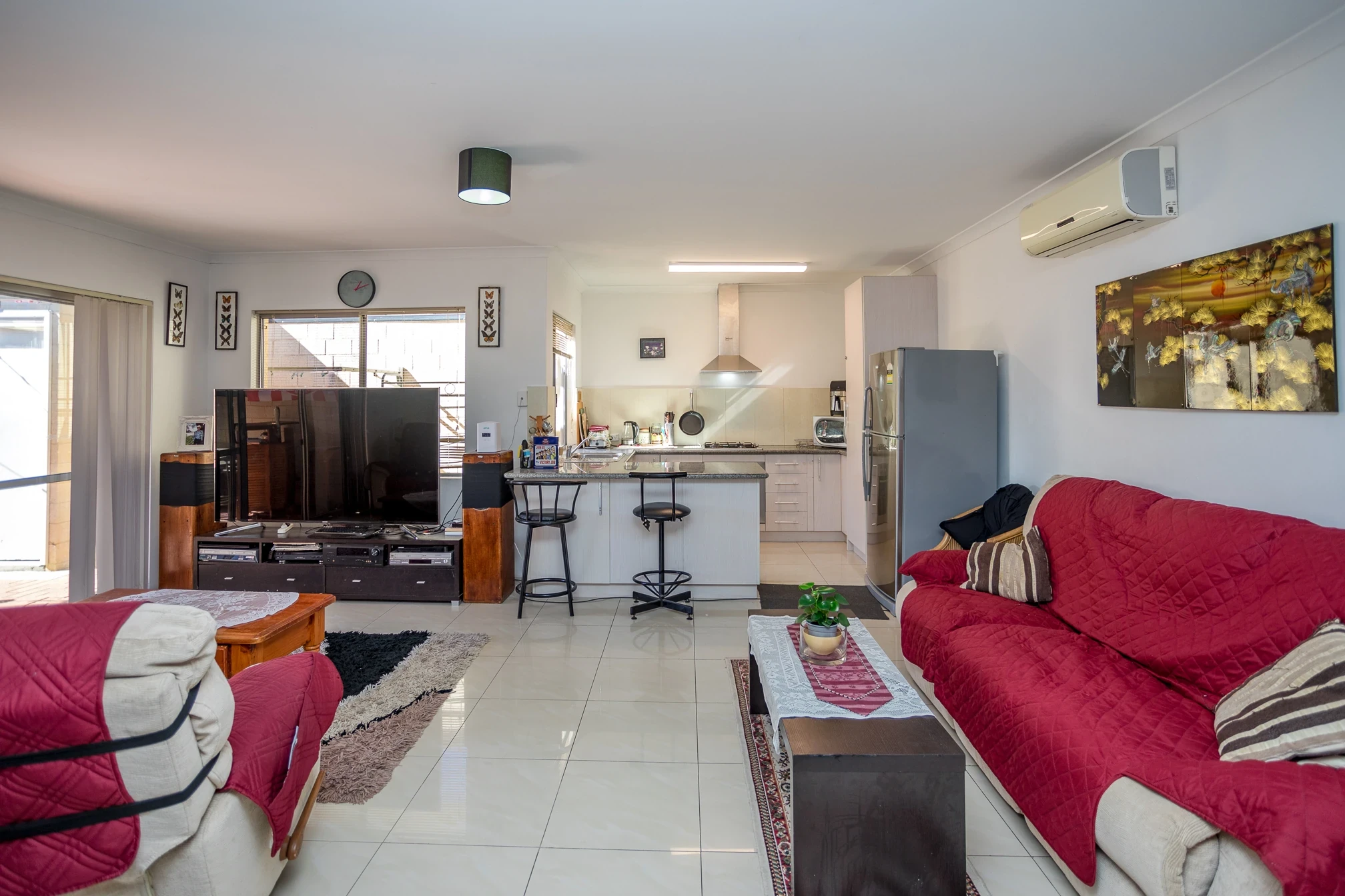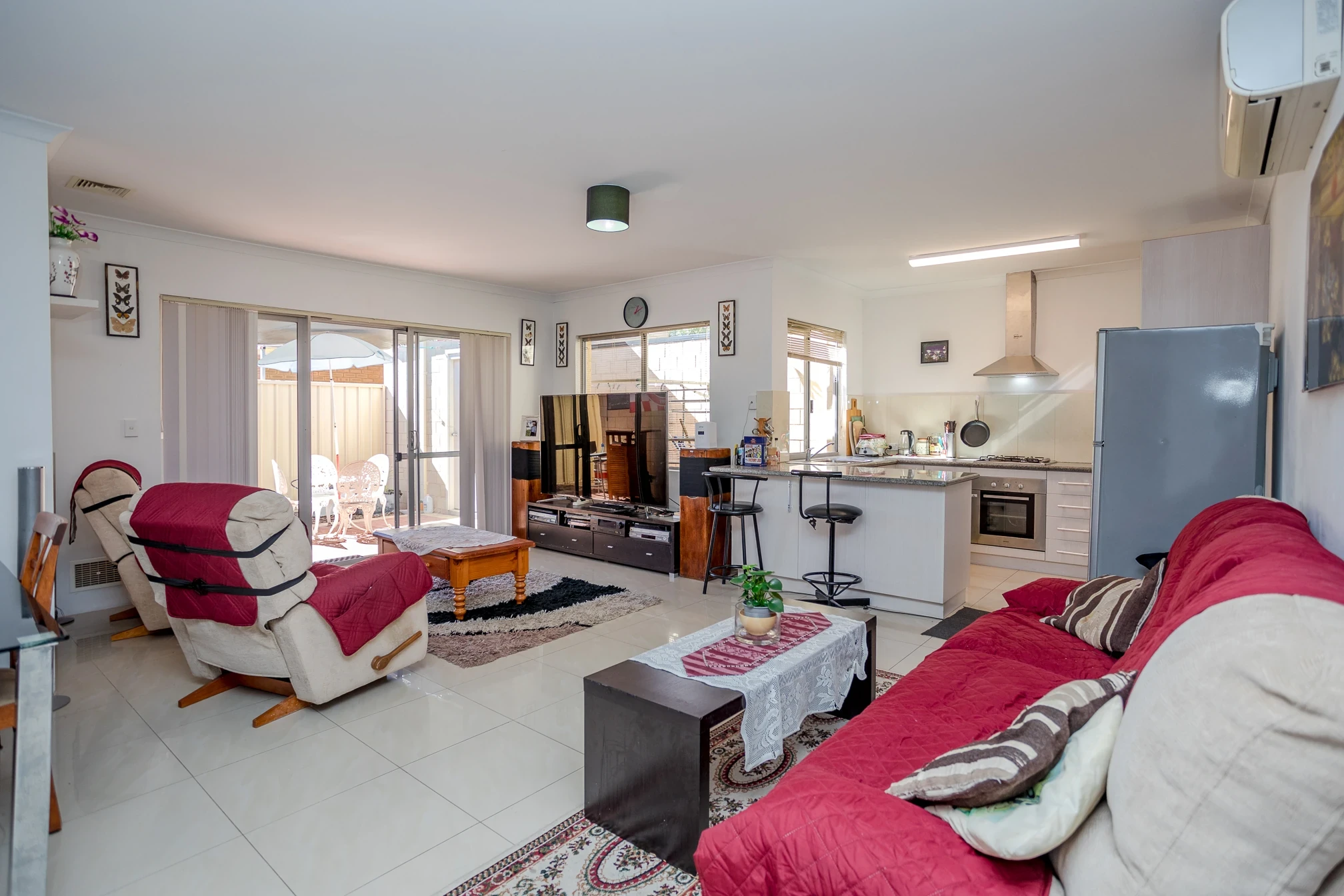 Spacious open plan living with split system air conditioning