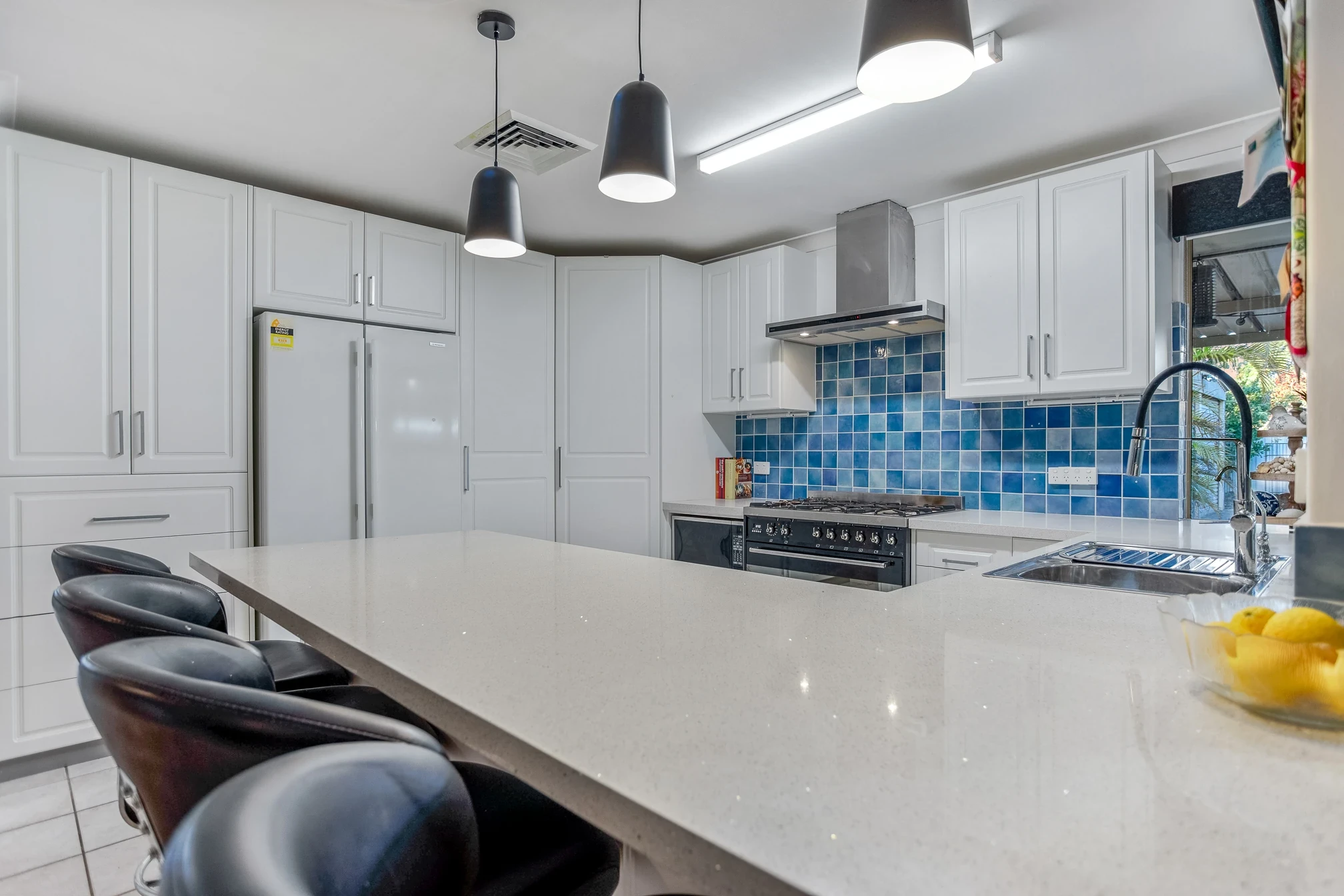 Renovated kitchen with custom cabinetry, 900mm appliances plus dishwasher