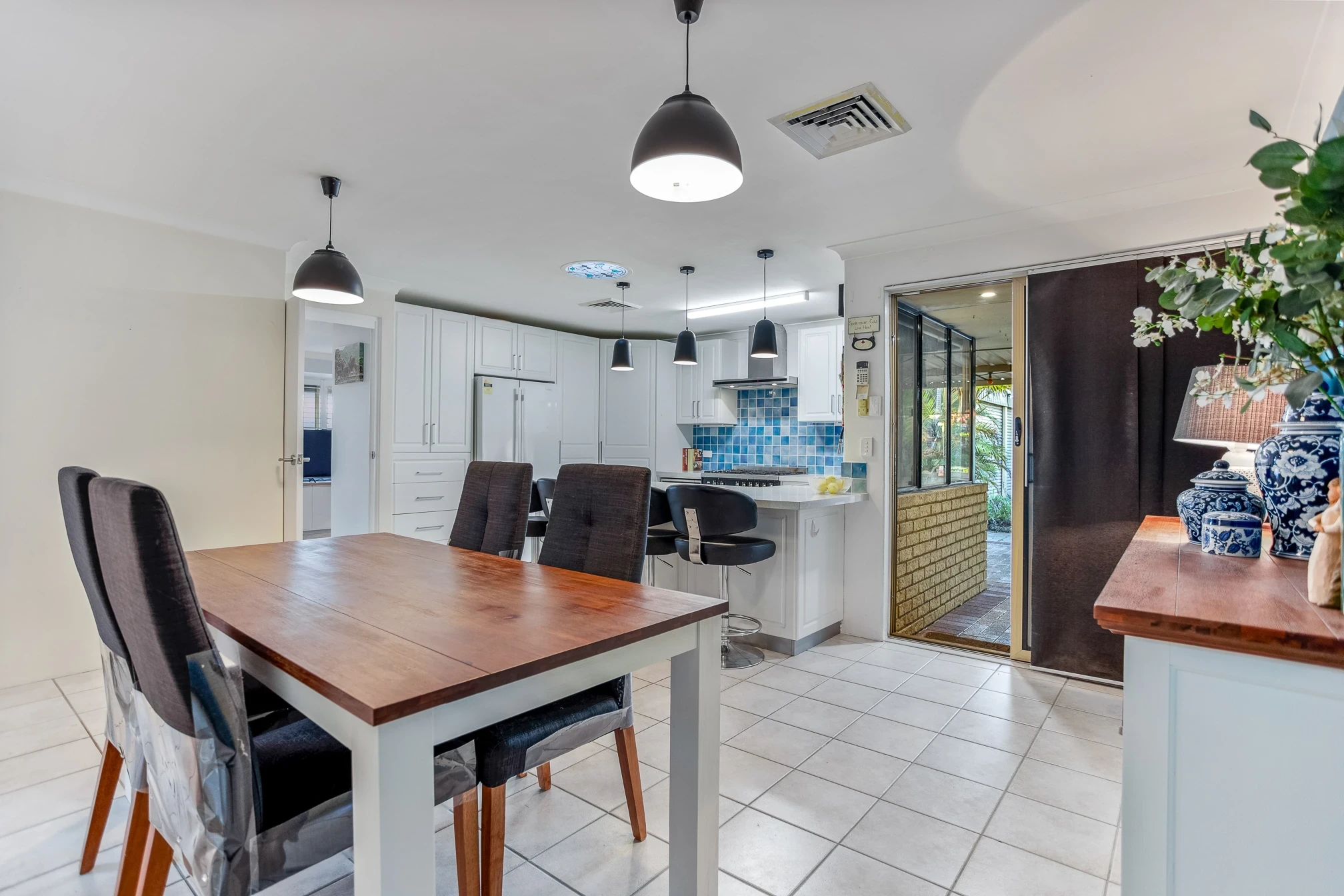 Large undercover patio with cafe blinds