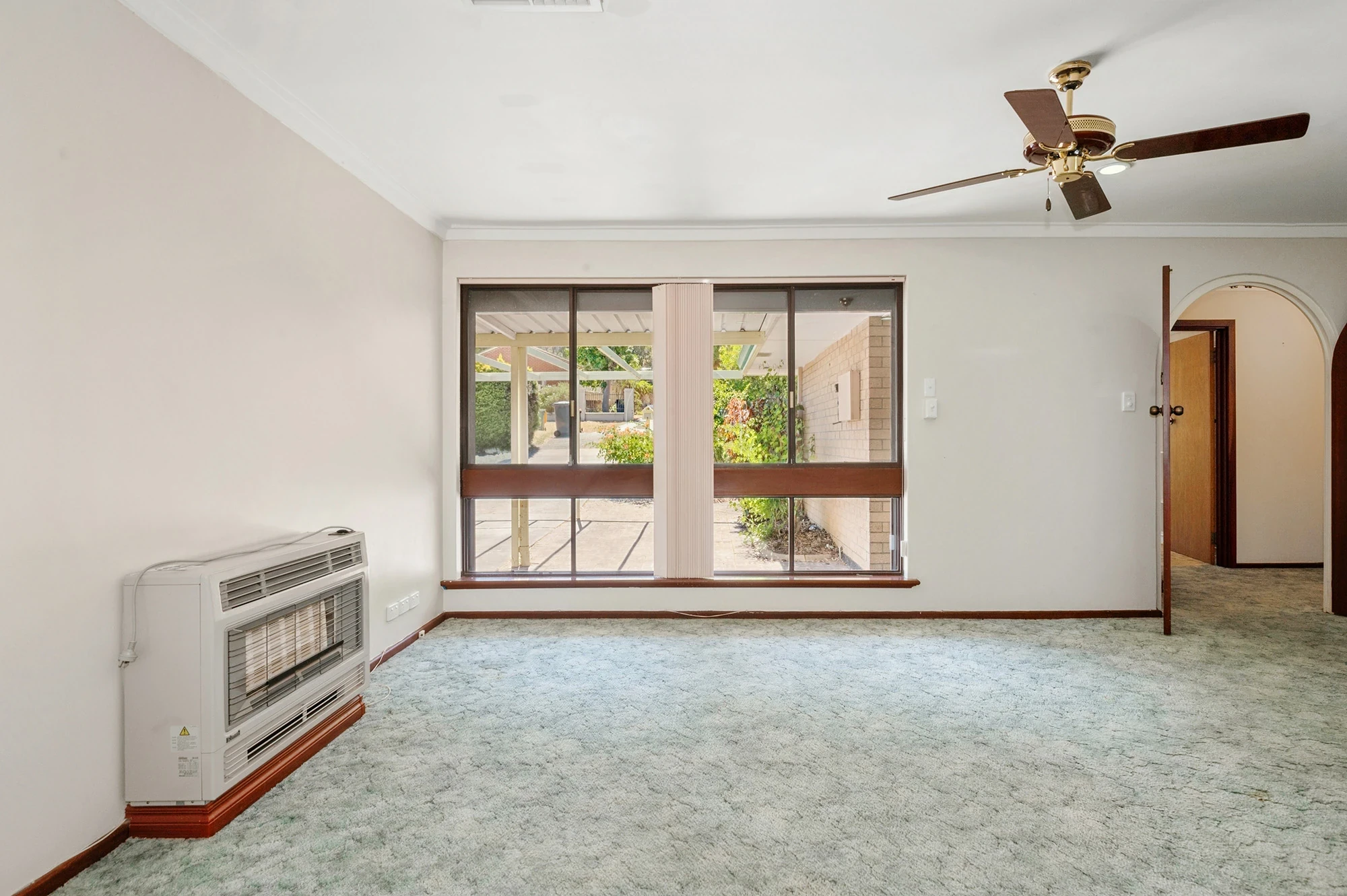 Large living room with gas heater