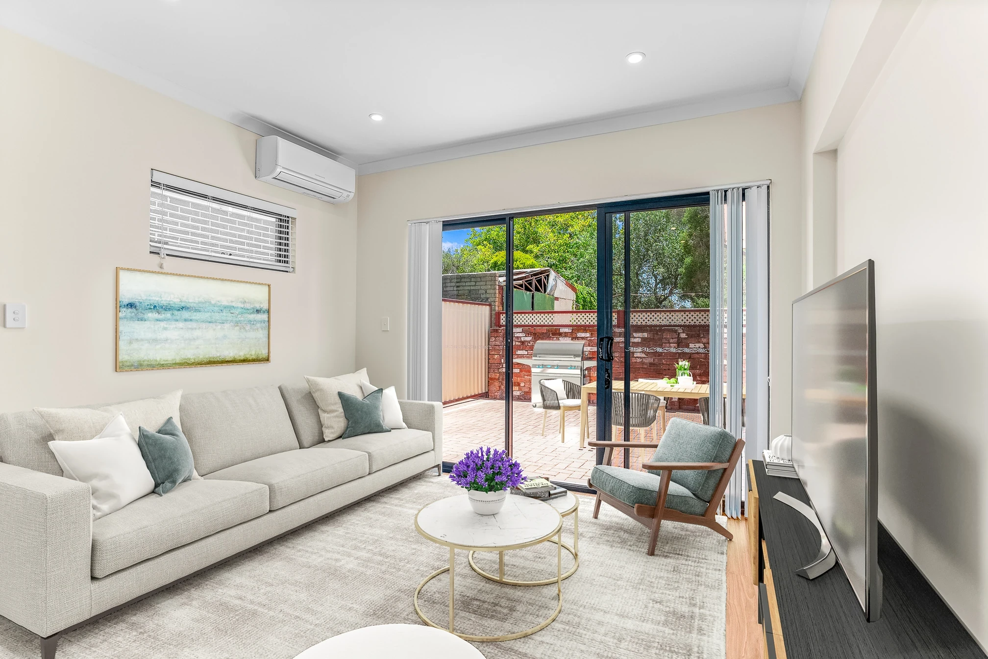 Open plan living/dining with split system air conditioning