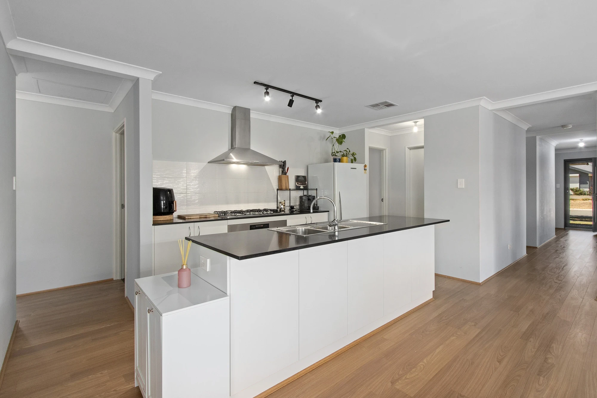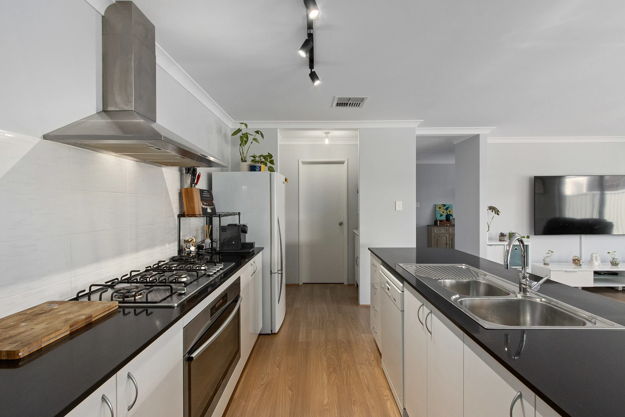 Gallery kitchen with walk on pantry and dishwasher