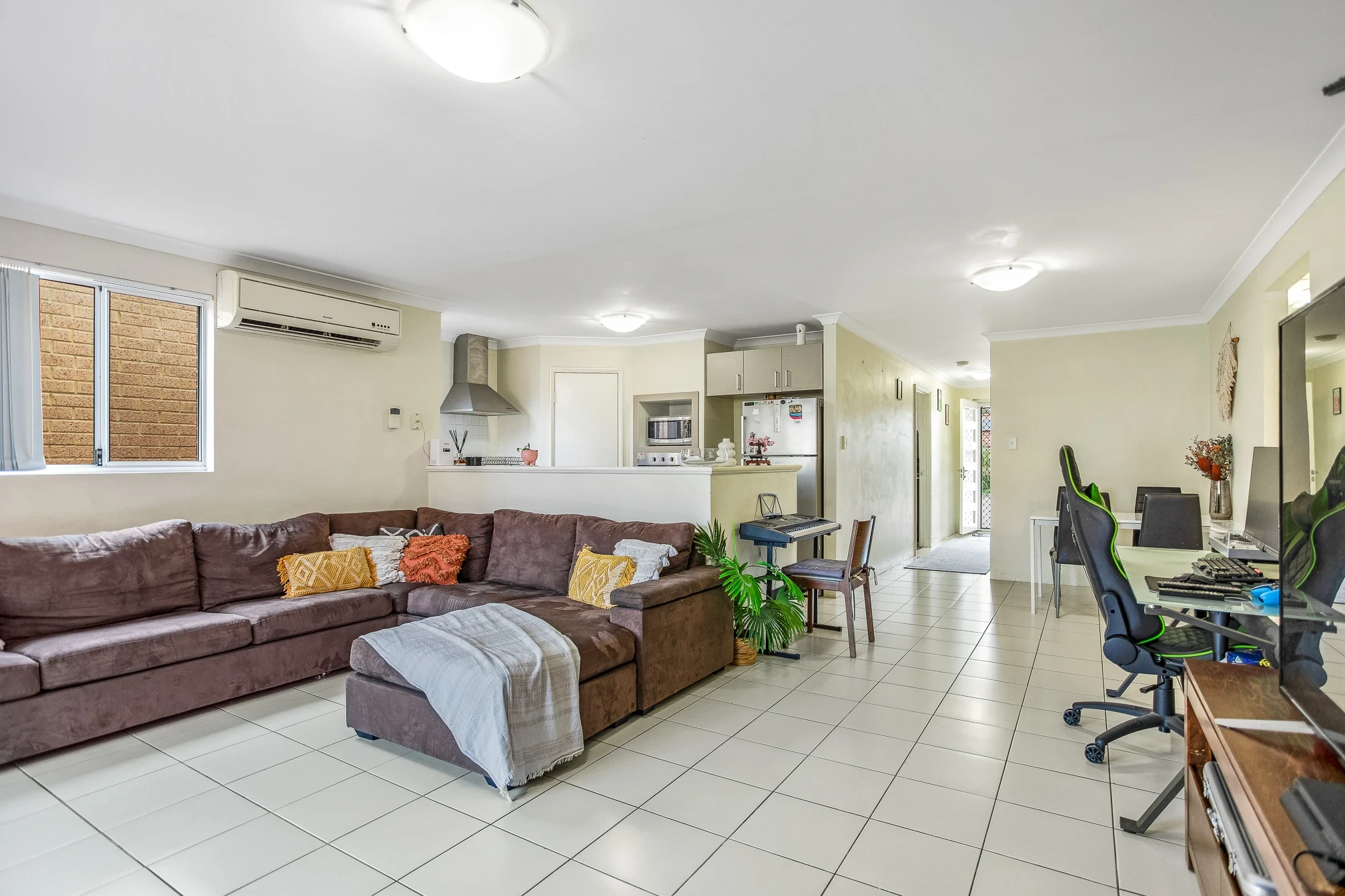 Spacious open plan living with split system air conditioning