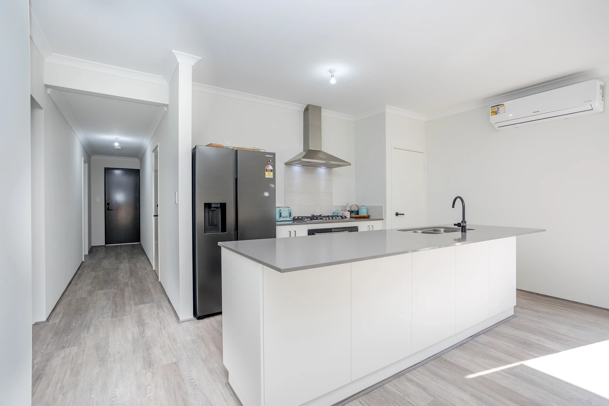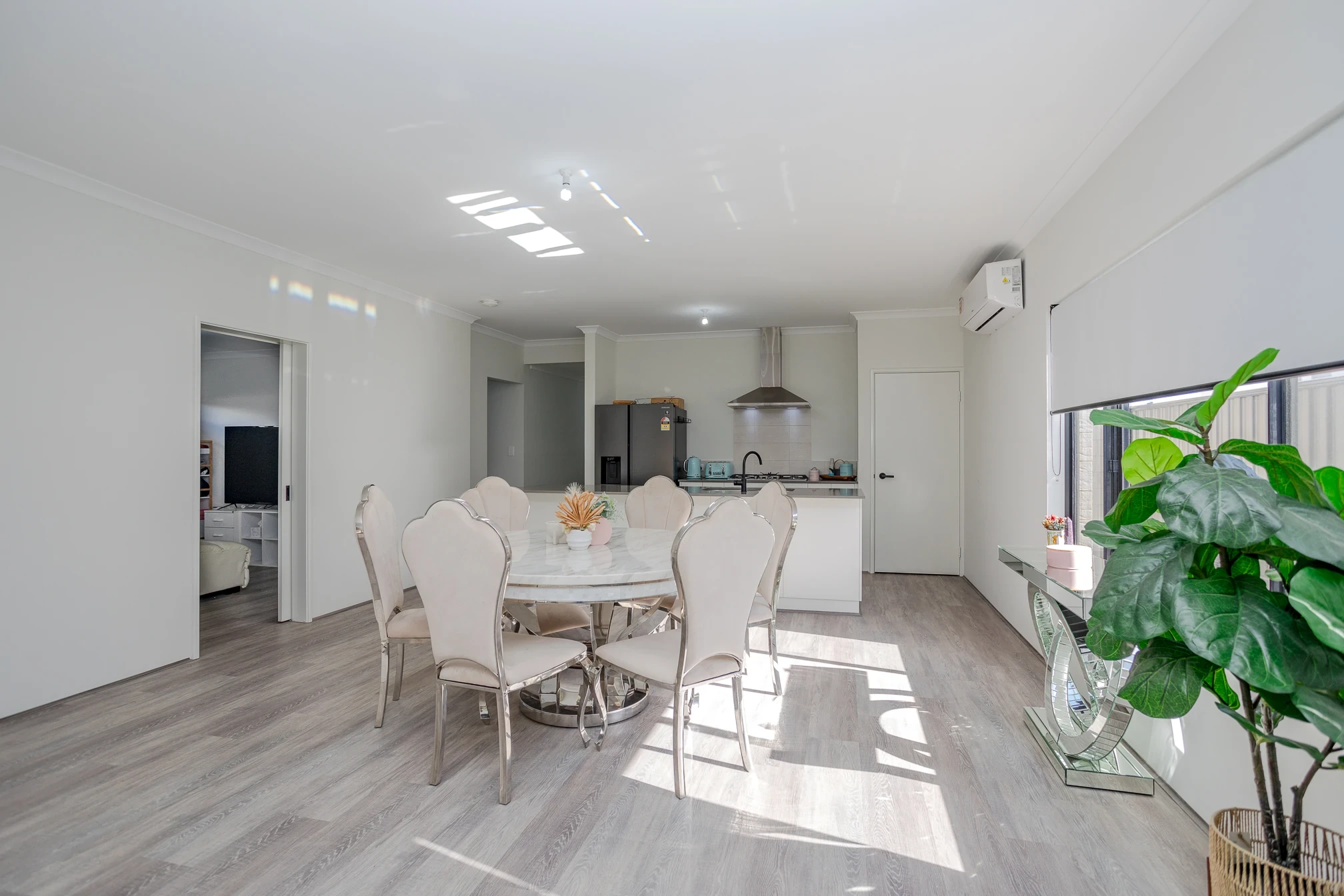 Spacious open plan living with split system air conditioning