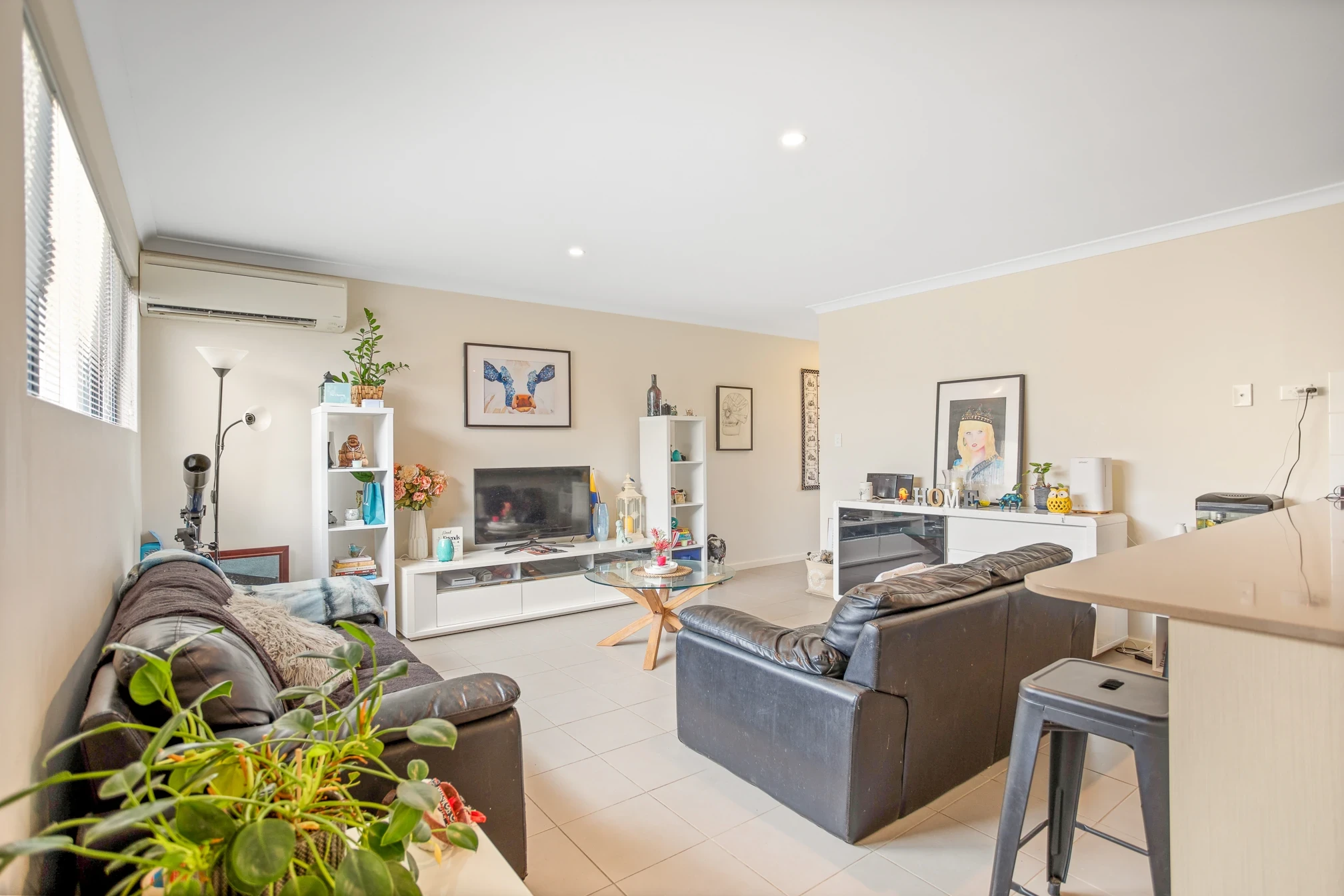 Split system air conditioning to open plan living
