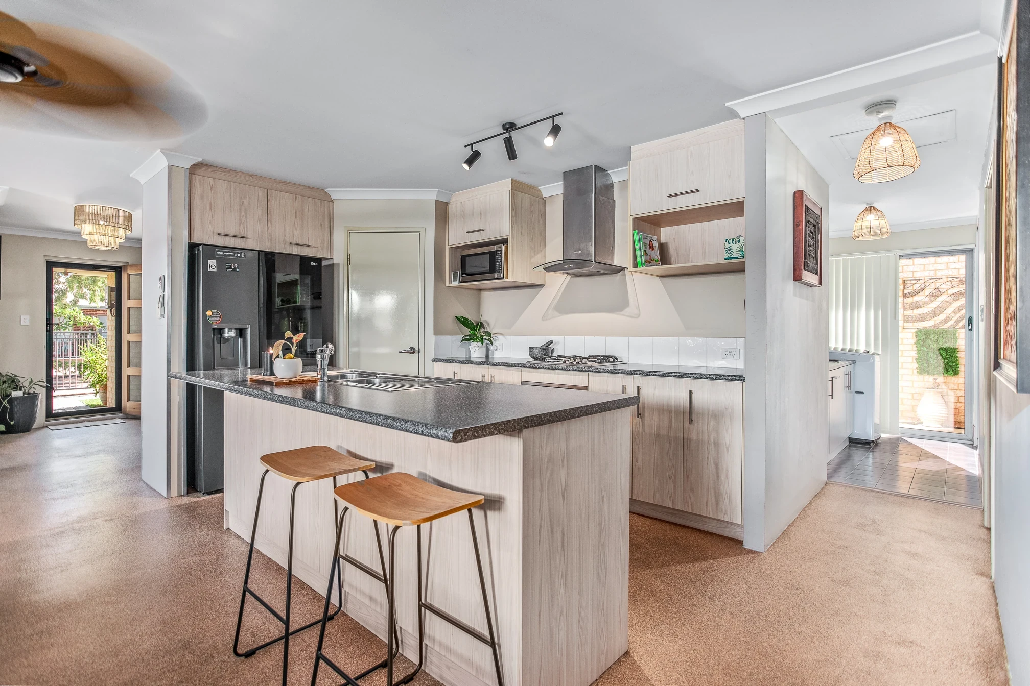 Stylish gallery kitchen with dishwasher plus plumbing for the fridge