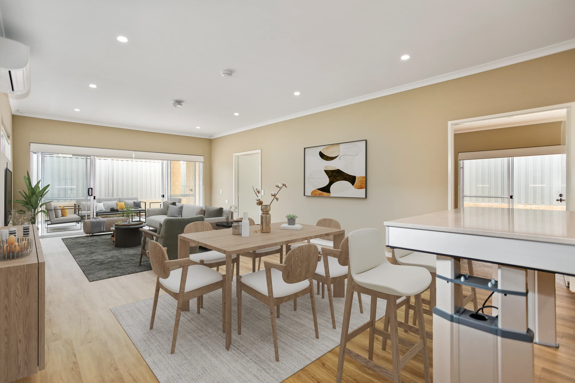Spacious open plan living with split system