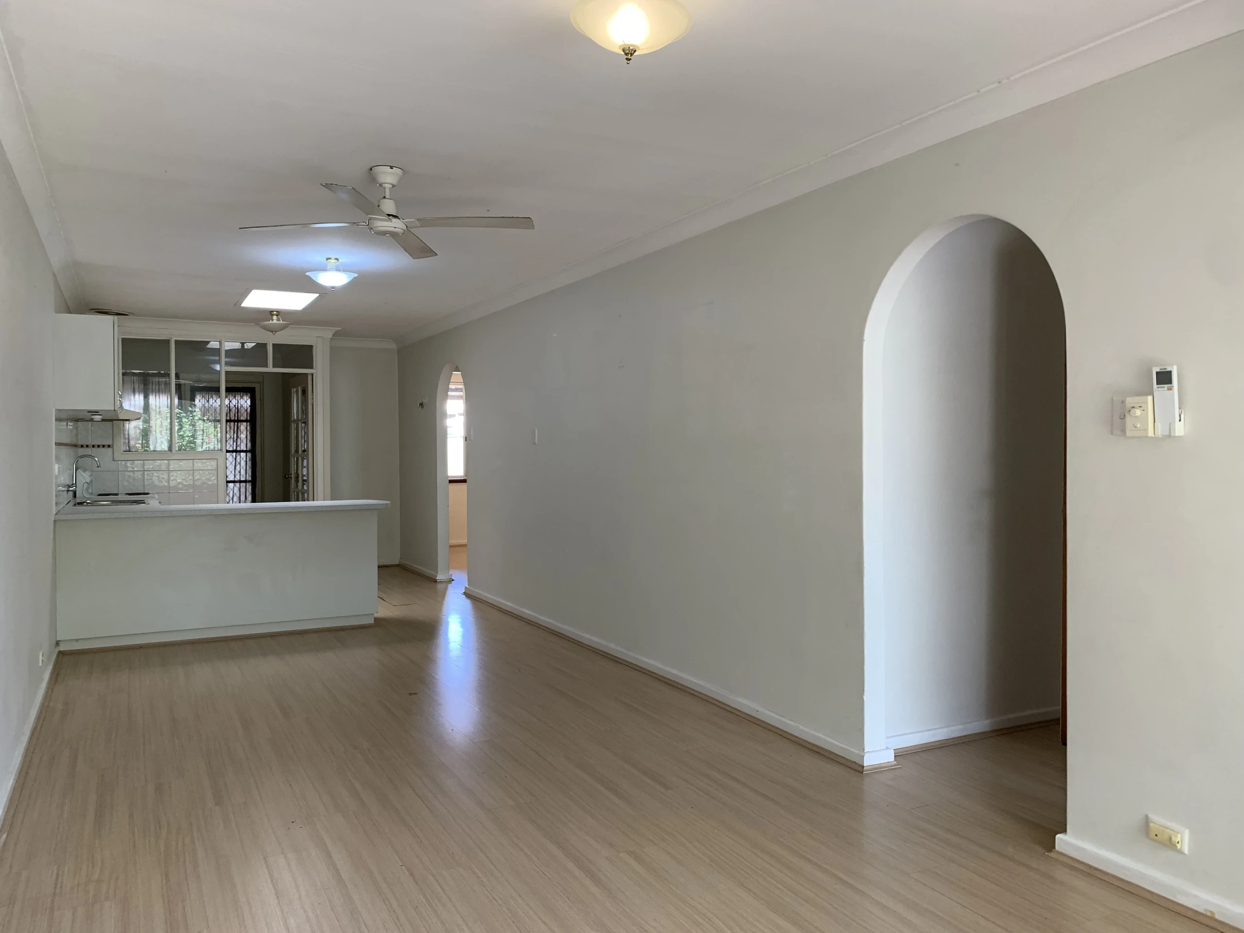 Open plan living/dining with split system air conditioning