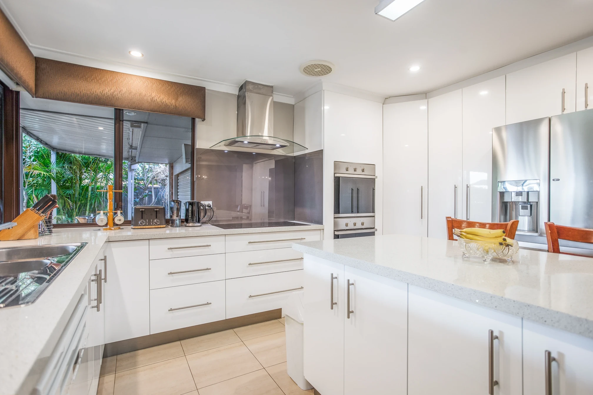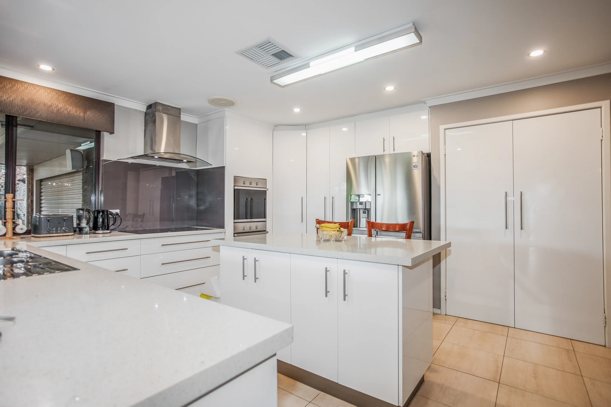 Stylish kitchen with island bench, plumbed fridge and dishwasher
