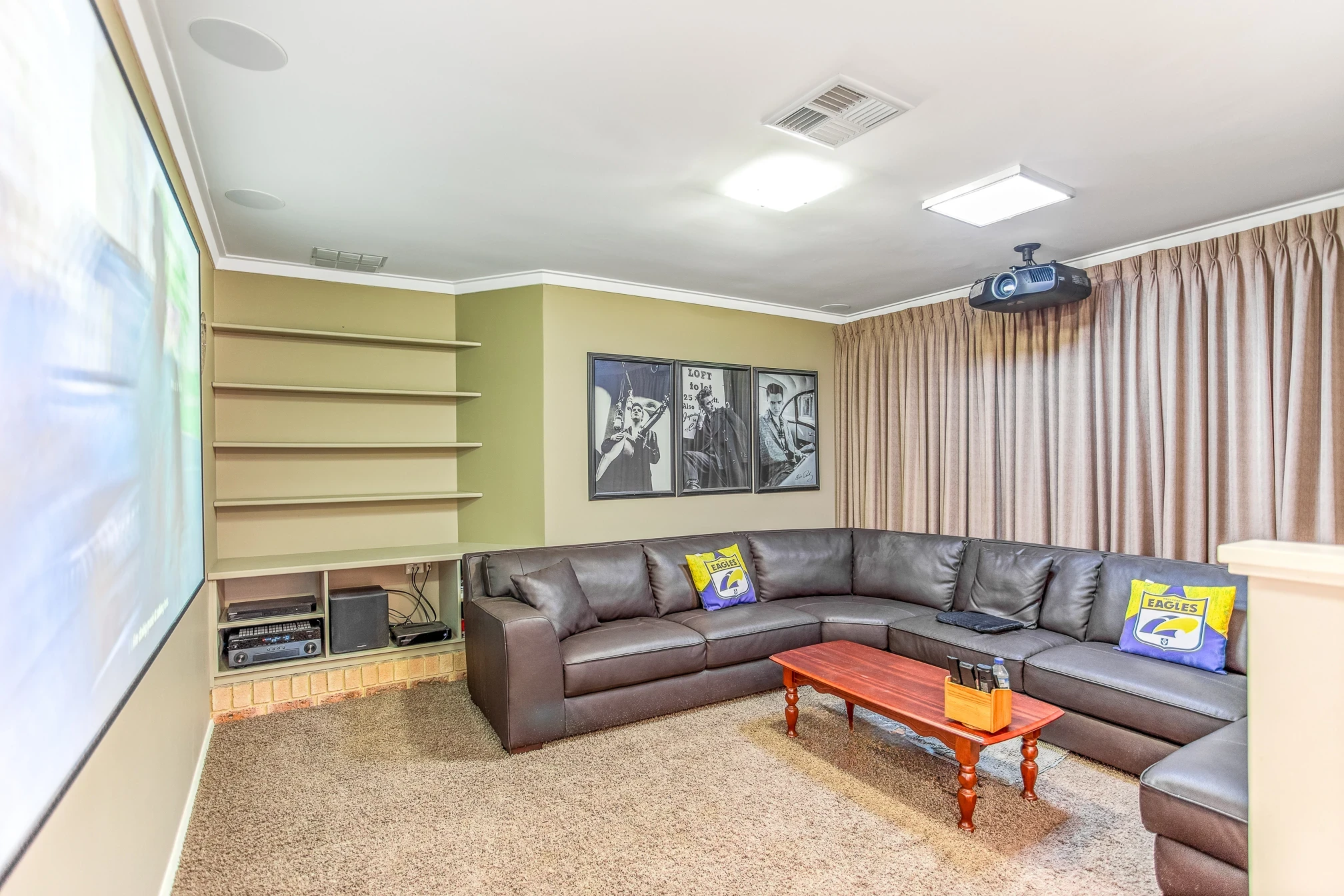 Sunken front theatre room with quality projector system