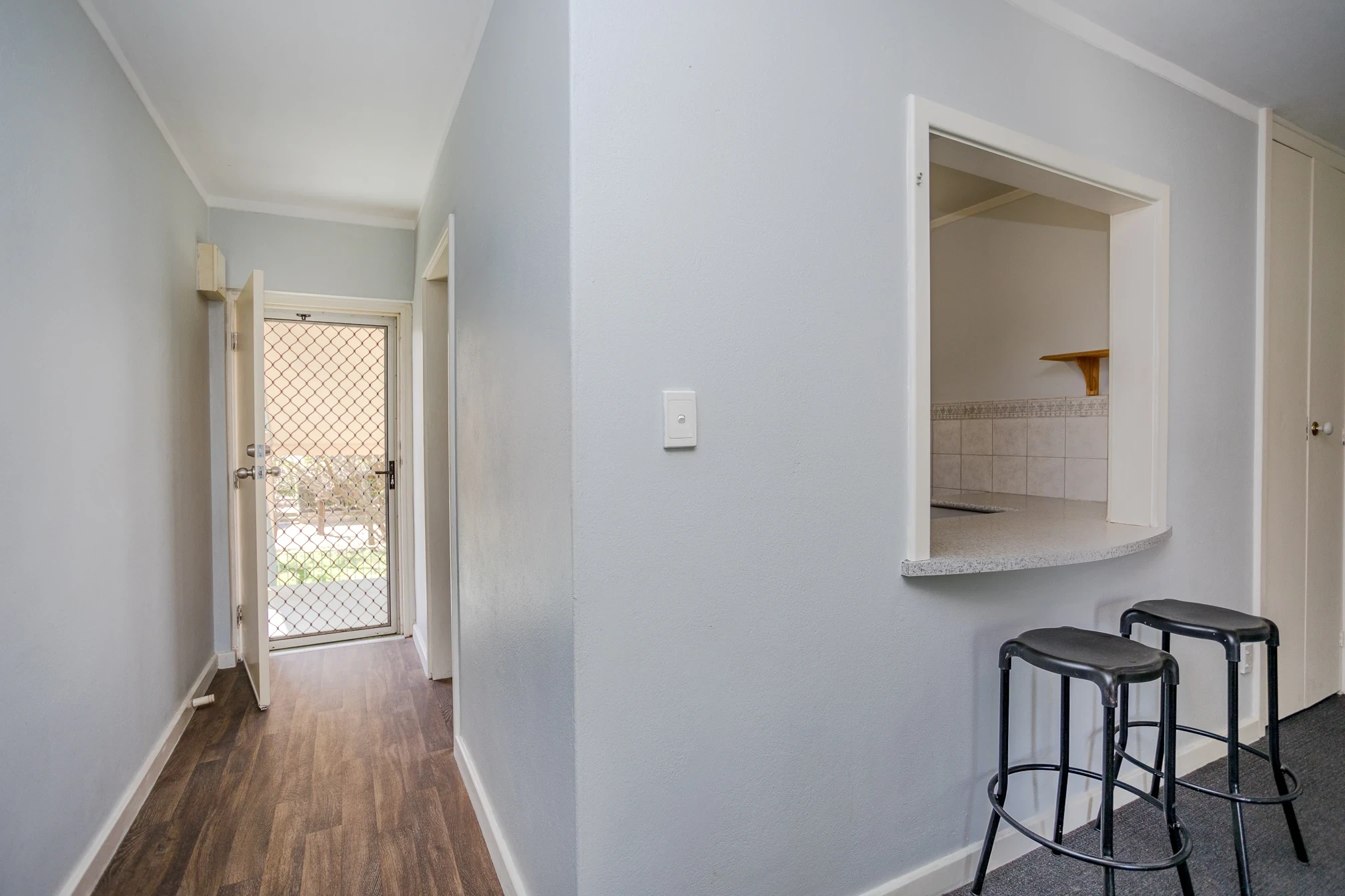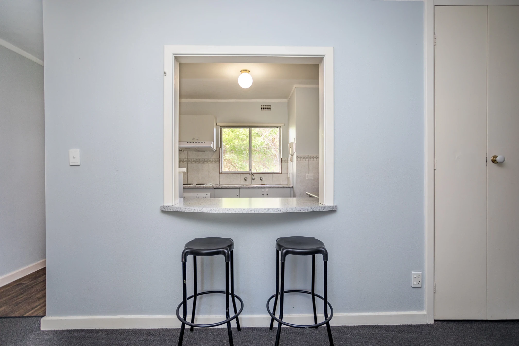 Stylish kitchen with servery window / breakfast bar