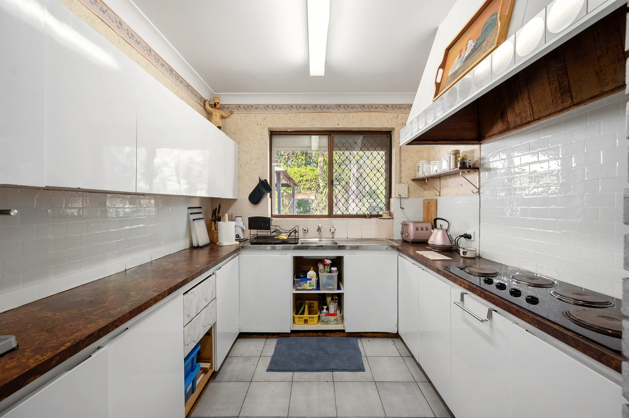 U shaped kitchen with ample workspace and maximum storage
