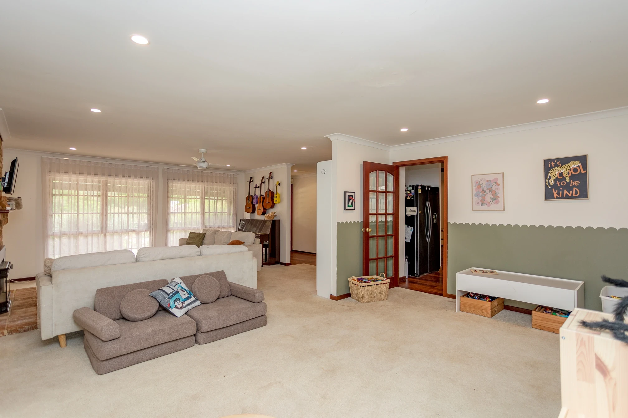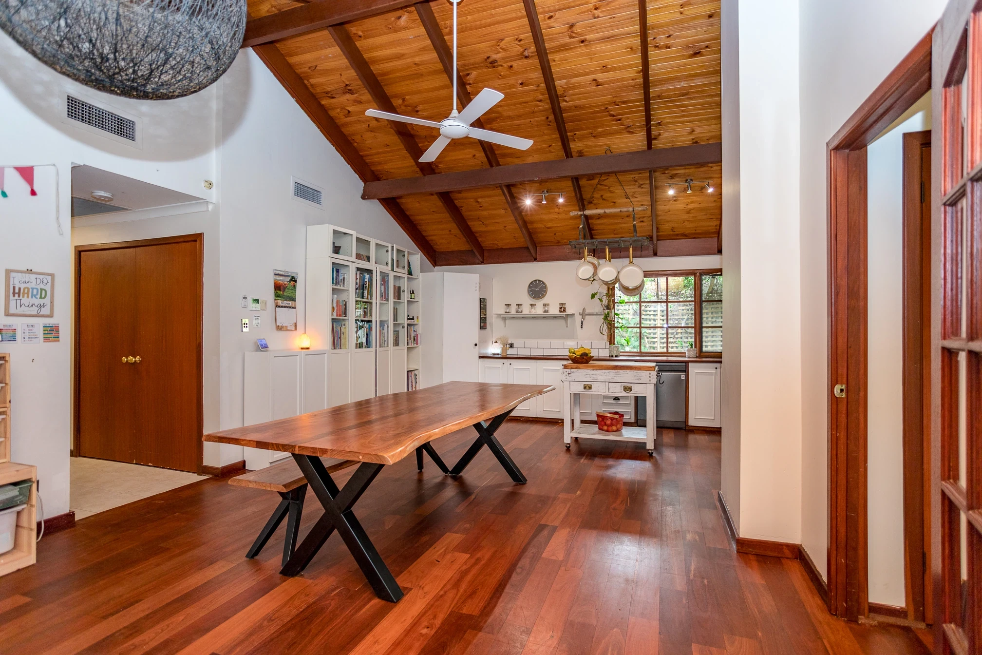 Large dining room with double doors for indoor/outdoor entertaining