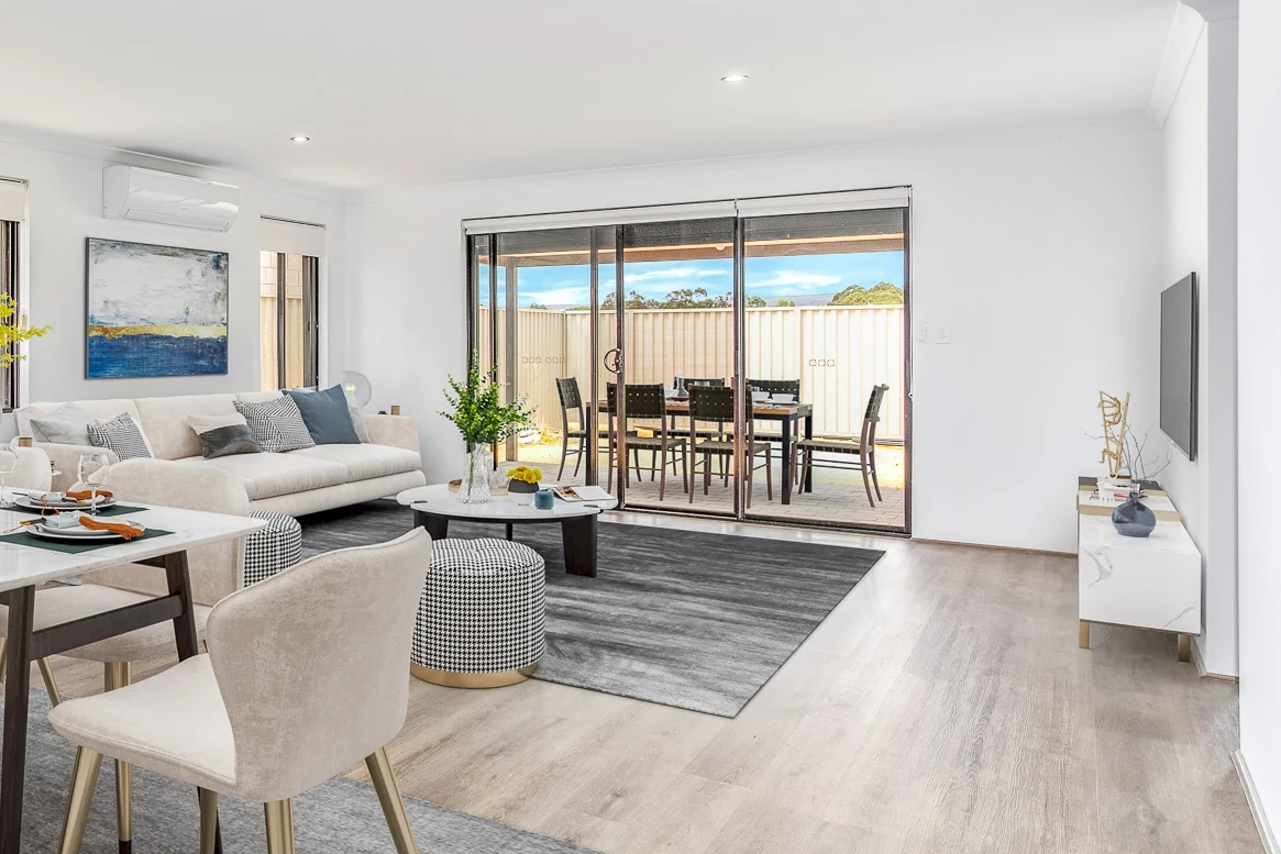 virtual furniture & grass in backyard added to photos for inspiration
