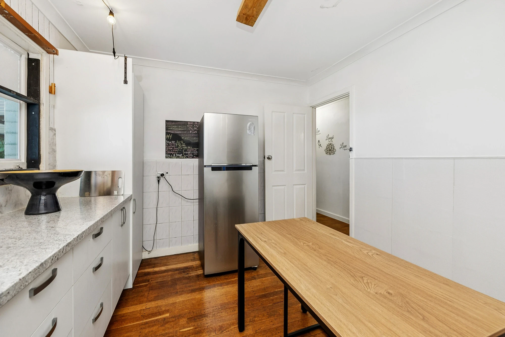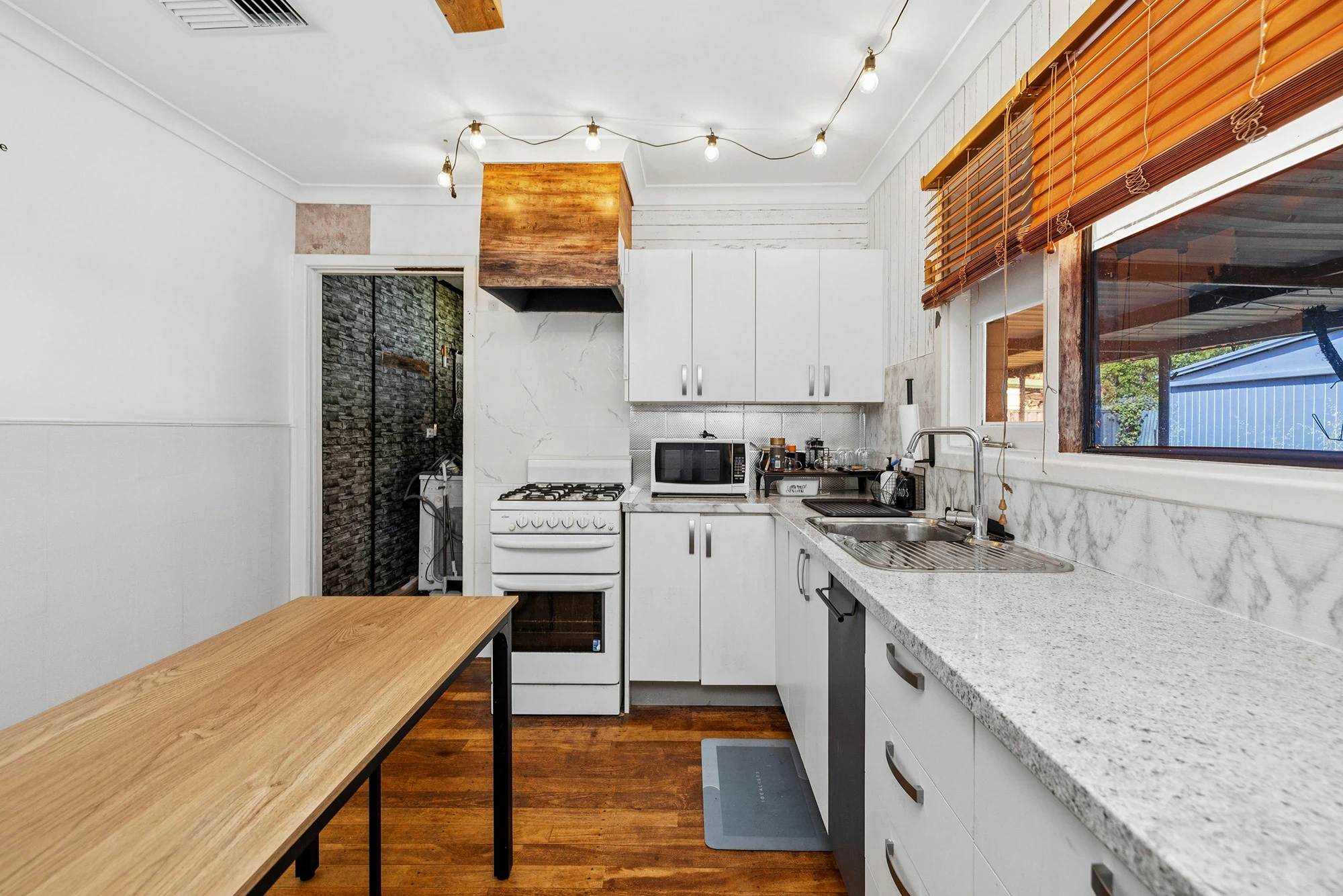 Seperate living area with ceiling fan, reverse cycle split system, gas point